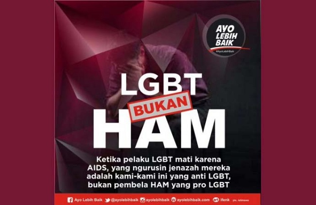 In spite of this, the press release provoked an immediate and harsh backlash. The hashtag #TolakLGBT (#RejectLGBT) started to trend on Twitter, along with posts declaring ‘LGBT itu PENYAKIT bukan hak asazi’ (LGBT is a DISEASE not a human right) and ‘LGBT bukan HAM’ (LGBT is not a human right). In response to this blowback, Komnas HAM swiftly issued a statement reassuring the Indonesian public that the commission did not approve of the legalisation of same-sex marriages.
