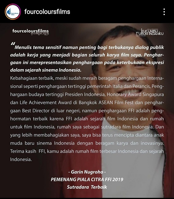 Garin Nugroho's statement following attacks on the film Memories of My Body